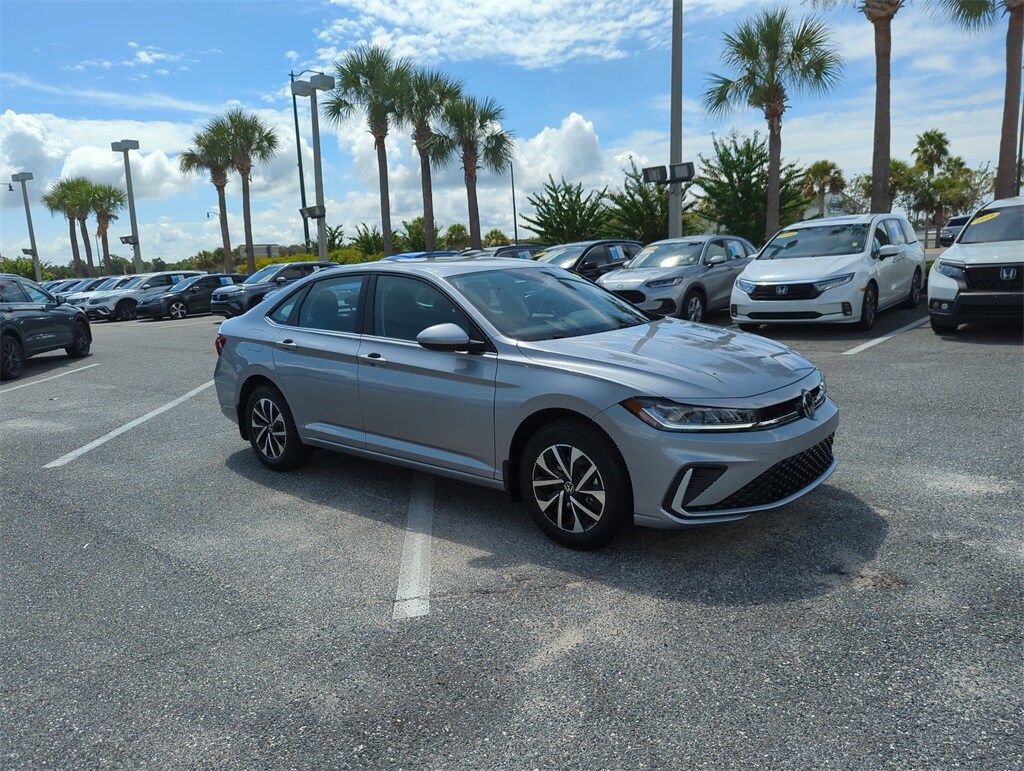 The price does not include tax, tag, license, an electronic filing fee of $449.00**, a private tag agency fee of $199.00**, and a predelivery service charge of $1199.00** **This charge represents costs and profit to the dealer for items such as inspecting, cleaning, and adjusting vehicles, as well as preparing documents related to the sale. * EPA-estimate metric: these are contingent on ideal conditions within a lab. Real-world situations such as carrying passengers or cargo, using climate control, driving style, and ambient temperatures can affect actual metrics. 29/39 City/Highway MPG Black Cloth. Silver 2025 Volkswagen Jetta 1.5T S FWD 8-Speed Automatic with Tiptronic 1.5L I-4 DI DOHC Turbocharged